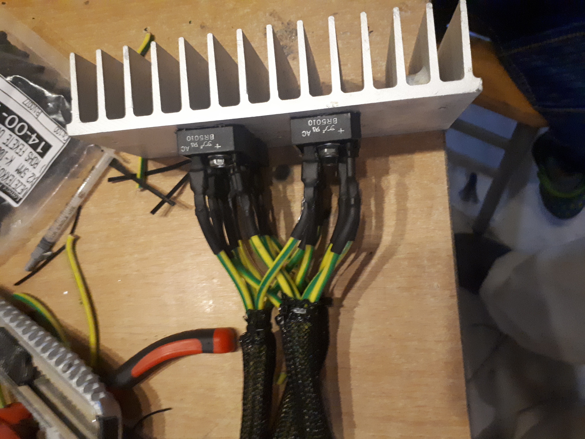 Kozos "harisnyaba" huztad a drotokat, ezert jo lett volna kulombozo zsugorcsovel szinezni oket, nehogy rosszul kosd oket. A kondikat is tehetted volna egymastol egy kicsit tavolabbra egymastol, hogy jobban tudjanak hulni.