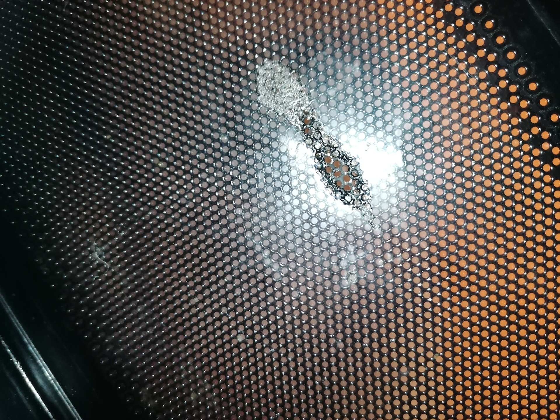 Szia! Magnetron antenna kupakot ellenőrizd, kilyukadt cseréld le. Az égés nyomát finoman csiszold meg, és fújd le festékkel. Csillámot cseréld ki.