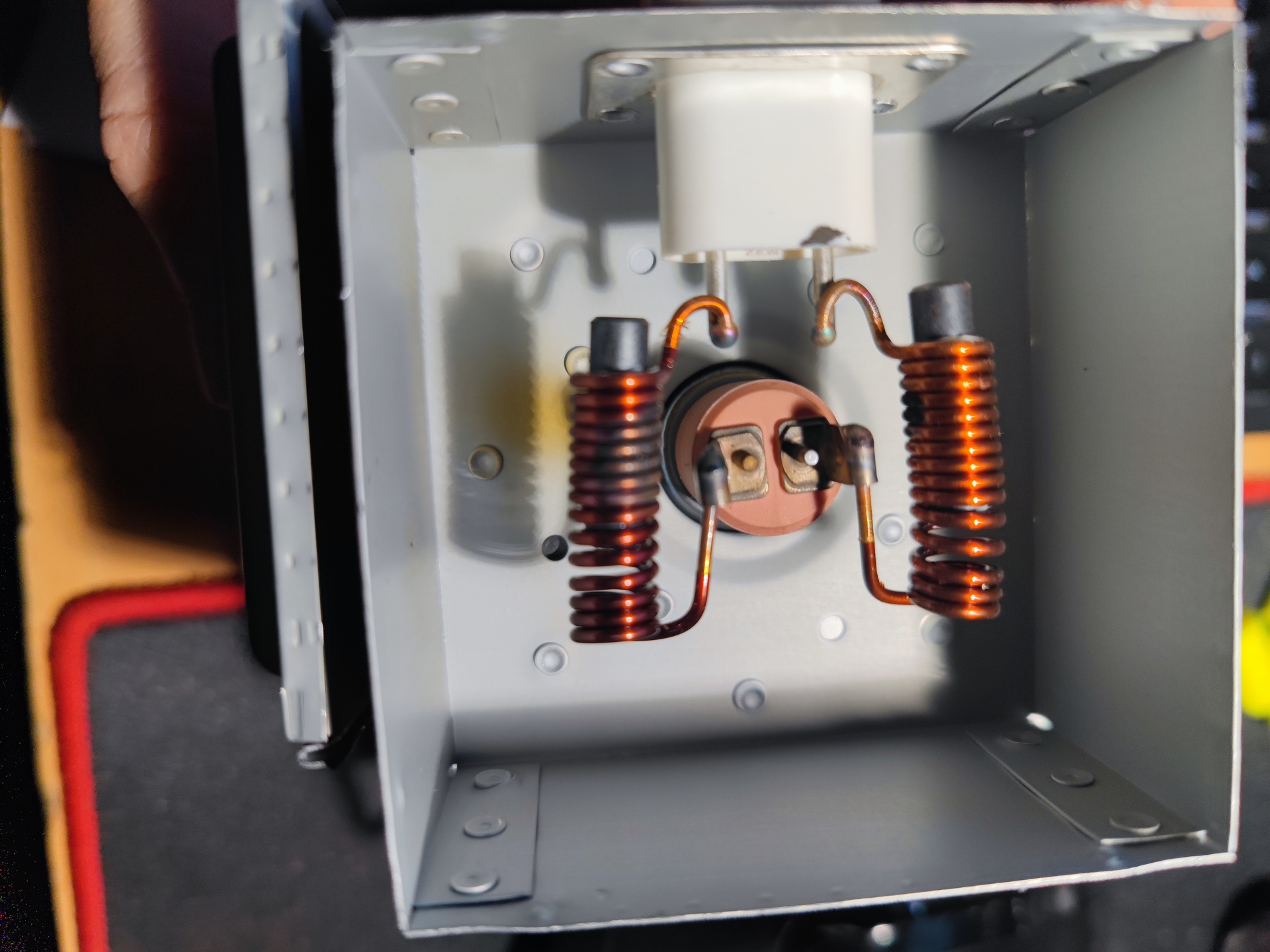 Sziasztok egy jártasabb kollegától kérdezném. A képen látható magnetronban az átvezető kondik zárlatosak lettek. Ki is ment a nagyfesz bizti viszont a a tekercsek is kissé sérültek. Ti mit mondotok erre ? A gép 3 éves és OM75P(31)ESGN magnetronról van szó. Érdemes átvezető cserélni és gondtalanul használható?