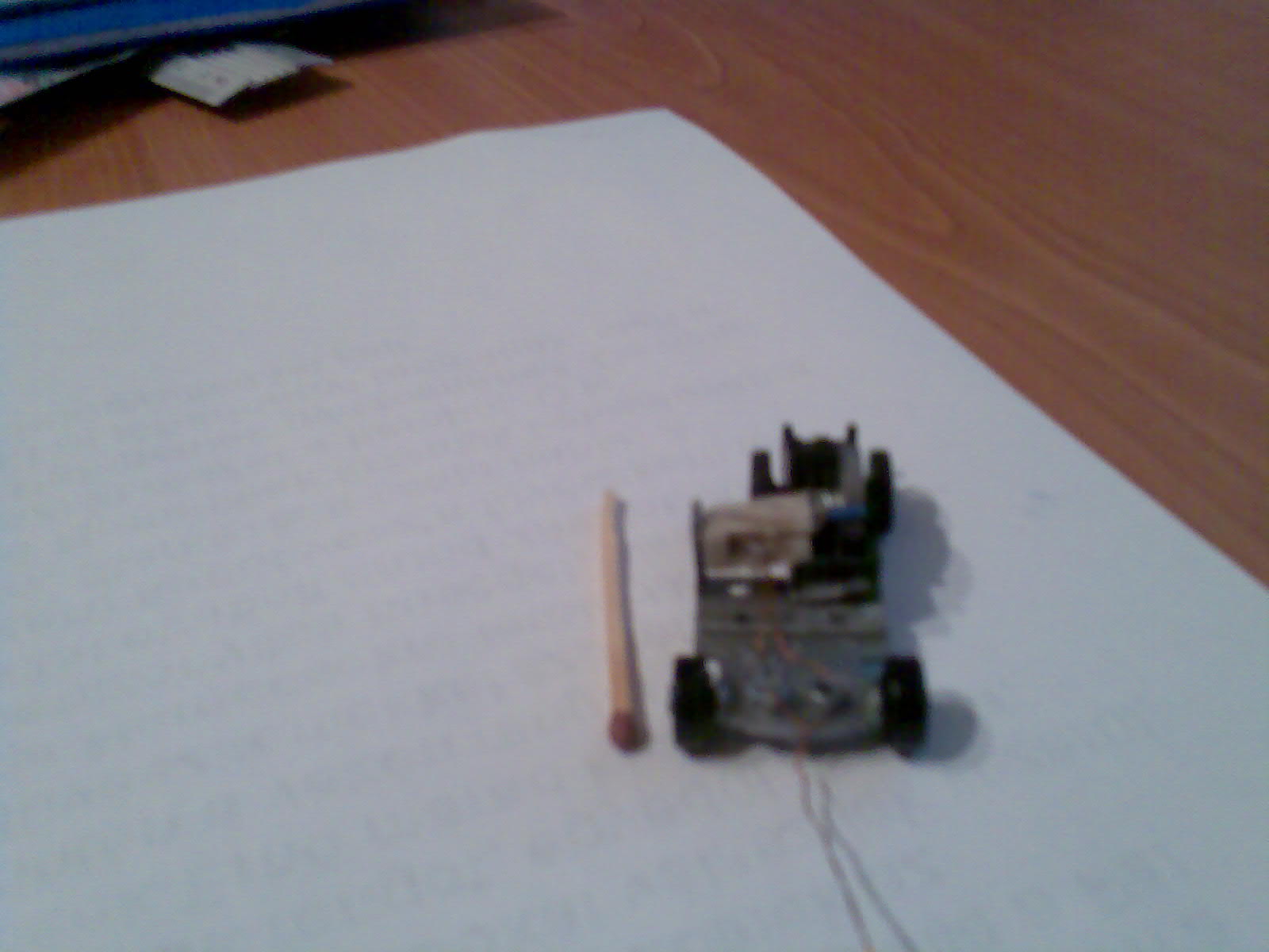 En keszitetem egy mikromotros kocsit (a motor egy NOKIA 3410-es rezgomotra volt), a vaza pedig jatekauto egy kicsit atalakitva.A hossza egyenlo egy gyufaeval.