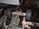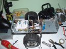 a motorja két elektromos csavarozó (a legolcsóbb volt a teccsóban) félbevágva, az akkuk még az eredetiek (800mAh) ezekkel 8-10 percig megy, a motorokat egy bevágott pvc csőbe szorítottam bele, a kerekek a régi monster autómból van amibe beleregasztottam két régi csavarozófejet ezért kivehetőek a kerekei ami megkönnyíti a szállítást, nincsen benne szabályzó (mert nem volt rá pénzem) ezért a két szervó mozgatja a két háromállású kapcsolót röviden ennyi nem egy tudományos remekmű, de ez az első robotom :yes: