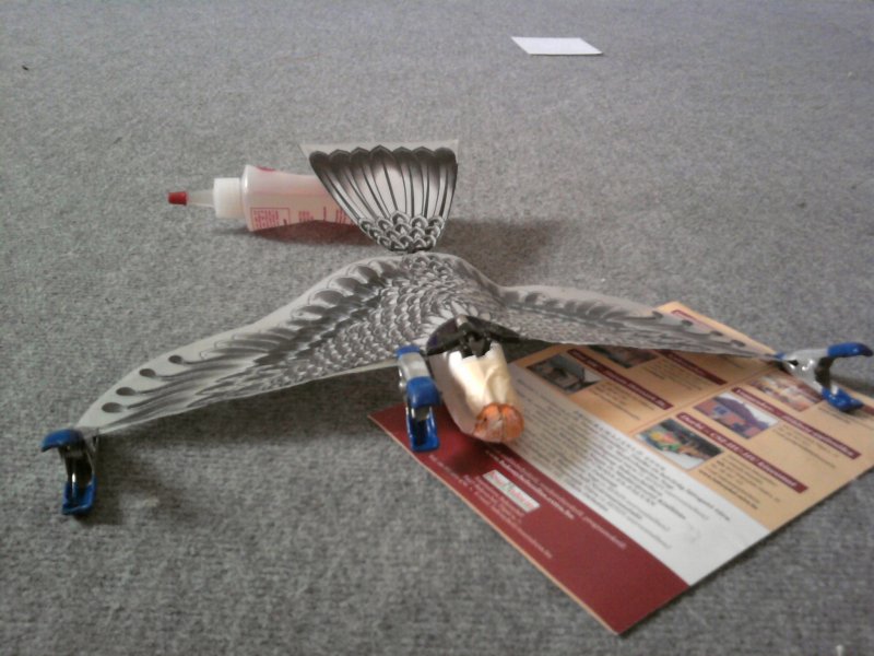 .Feltöltöttem képeket, hogy akit érdekel lássa mi maradt szegény gépemből. Több rajta a ragasztó és a ragasztószalag, mint maga a gép, de: Repül és már alig törik. Illetve mellékelve a madár is amivel a fenti kis tuningot akarom megcsinálni.