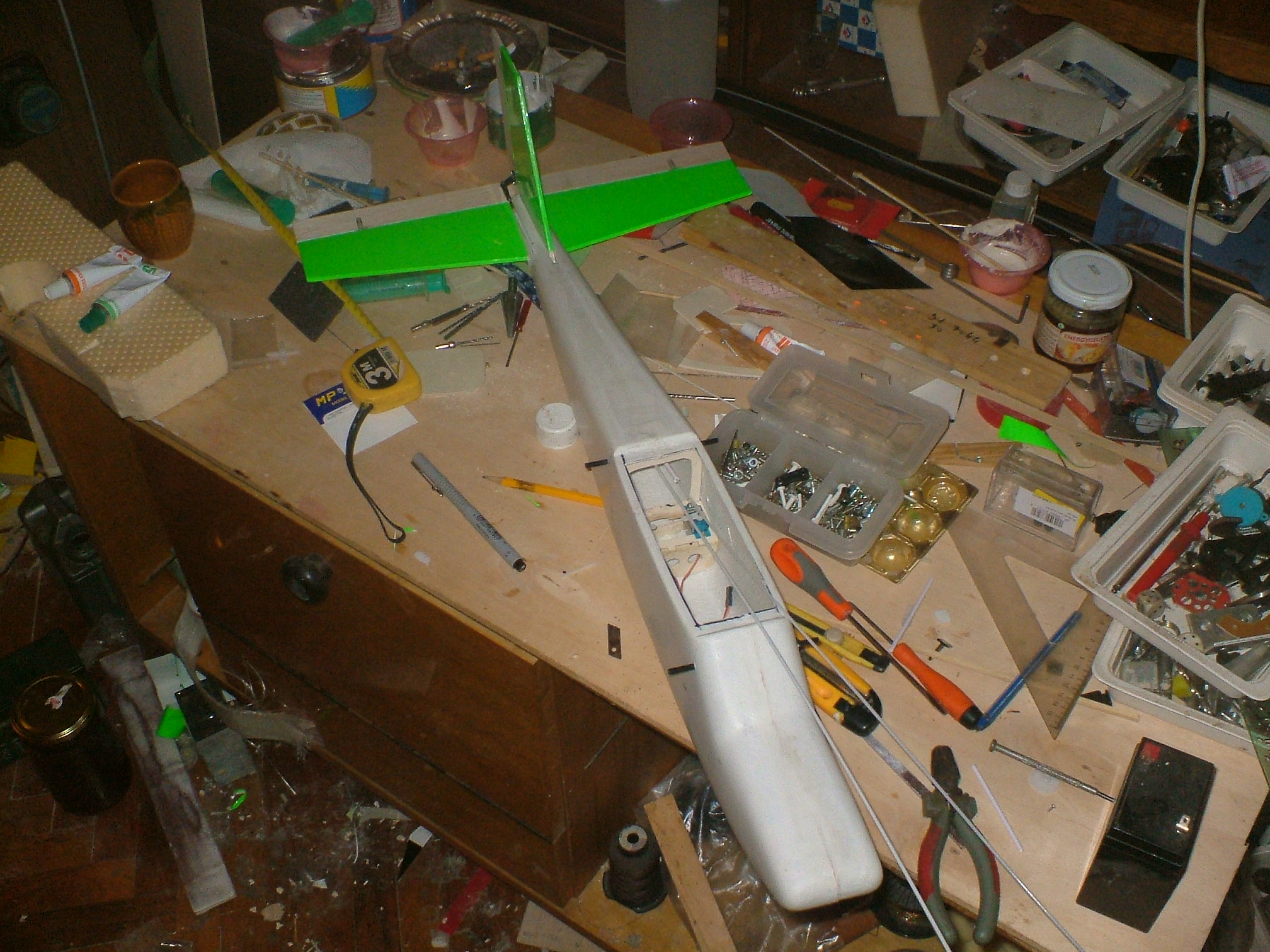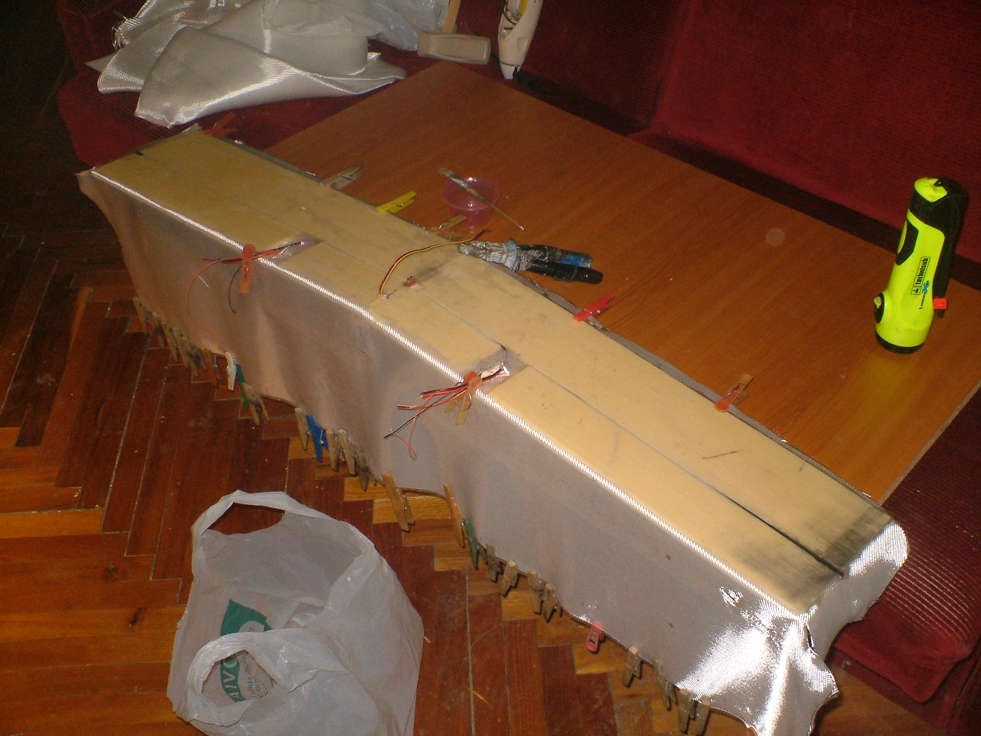Van a youtuben repülő fünyiro ,mértnem azt csináljátok meg.Az én kis repcsim ismét épülgetett.kezd összeállni a kép. Miután a szárnyat összeragasztottam, úgy döntöttem hogy kétmotorosra csinálom.Úgy előnyösebb a kamera elhelyezése.Idáid a légcsavar mindig becsikozta a képet.Atörzsbe bekerültek a szervok,a szárny üvegezés alatt.