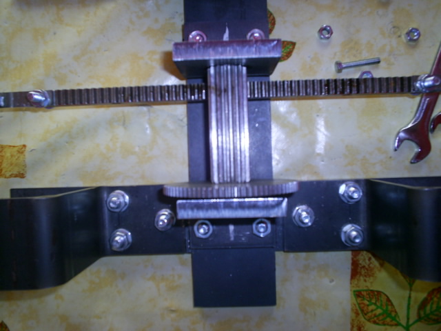 Maga a kormány mozgatás elég primitív, sajna ebből adódóan nem is proporcionális, ami elég nagy hiba, mert elég nagy a reakcióideje az adóhoz képest. A költségek: Természetesen a legdrágább az, amíg az első prototípust ki nem fejleszted....rengeteg eldobott ötlet, feleslegesen beszerzett alkatrész... A távirányító: Budapestre kellett felutaznom érte, lévén Kecskeméten(ahol lakok) nincs modell témával foglalkozó üzlet. Az ára 13000Ft volt. A kerekek darabja 2500FT. 4 darab van belőle. A rengeteg esztergályos munka kb. 30.000Ft. Csapágyak, csavarok stb...mondjuk 5000Ft Az alvázat a haverom munkahelyén vágtuk ki lézerrel. A benzintankot rendeltem Pestről, 1500ft. Most kap tárcsaféket, 5000. Persze ha most építenék egy ilyet, fele ennyiből kijönne, sok felesleges kiadást meg tudnék spórolni... Itt a kép kormányról...