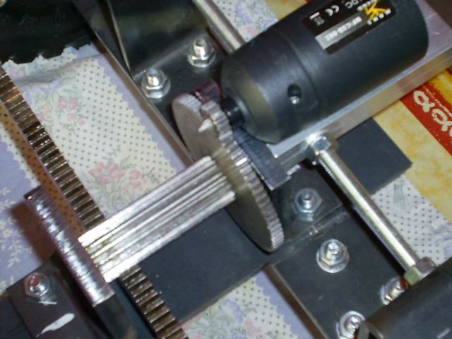 Csáó! A kormányt egy Tescoban vásárolt kézi csavarbehajtó mozgatja, egy lassító áttételen, és egy fogaslécen keresztül. A csavarbehajtó aksija 3.6V-os, nem túl erős darab, ami a legnagyobb baj, hogy aksija nem bírja túl sokáig.