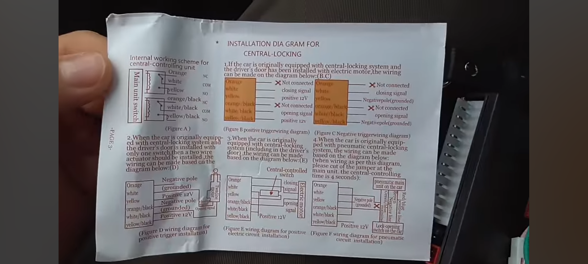 Az ajtóban rákötötten a nyitó ès a záró szálat, a sárga, sárga/feket, piros kapta a +12V-ot, a narancs, narancs/fekete, fekete a testet.