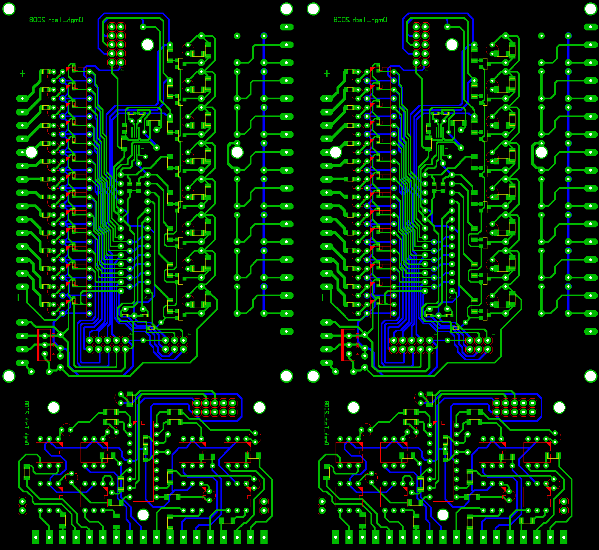Itt van egy "komplettebb" nyákterv (16f876-tal) ez gyártásra kész, plusz egy triac vezérlő optocsatolós kártya is van rajta, ami 16f628-cal megy... a két panel összeköthető