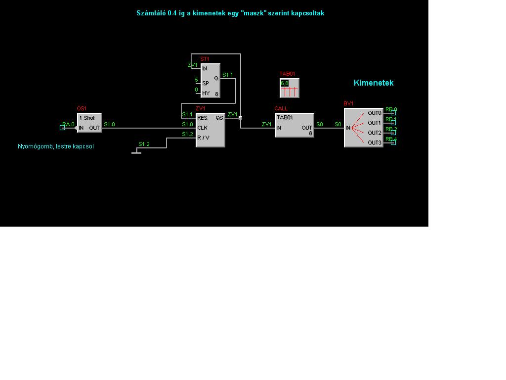 ezt simán logikai kapukból összerkhatod: És, Vagy, Kizáró_vagy kapuk ezeket 16 bemenetig lehet alkalmazni és akár 50-60 példányban, Ott van a set_reset, aztán összehasonlítás, schmitt-trigger stb,...aztán az adott változó be vagy kimenetét egyszerüen invertálhatod jobb egér és kipipál ....Próbálj rajzolgatni és a szimulátort kapcsold be, és megmutatja mi lenne a valóságban... a bemenetre kattints az egérrel és aktivvá válik...stb...