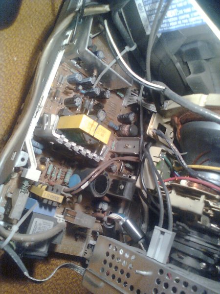 Szia, előljáróban annyit, hogy tisztában legyél a dolgokkal, a monitor, csak úgy mint a televízió nem játék, a nagyfesz trafóból 20-30.000V feszültség jön ki, a képcső hátulja felé, az a fekete tappancs. Mielőtt bármit tennél, ki kell sütni a képcsövet mert ha megüt, az nem lesz kellemes, nem melesleg életveszélyes. Ezt úgy kell csinálni, hogy fogsz egy normális mérővezetéket, az egyik végét rendesen hozzá rögzíted a készülék test pontjához, a másik végét amelyiken a mérő tüske van óvatosan becsúsztatod az anódsapka alá, a mérőzsinórt a nyakánál fogd meg , hallani fogsz egy kis csattanást, ezek után a táp kondit sem árt kisütni, én egy 220V os izzóval szoktam, a két vezetéket hozzá kell érinteni a kondi két lábához (előzőleg készíts egy foglalatos izzót, kábellel, később még kell). Ezt a kondit, a sárga trafó illetve hűtőborda közelében találod, az a nagy sötétzöld az, 350-400V 80-120µF , ha ezzel megvagy, már bátrabban de még mindig óvatosan nyúlkálhatsz. Ezt minden készülék bedugás , próbálkozás után meg kell ismételni, ha nincs gyakorlatod a javításban.