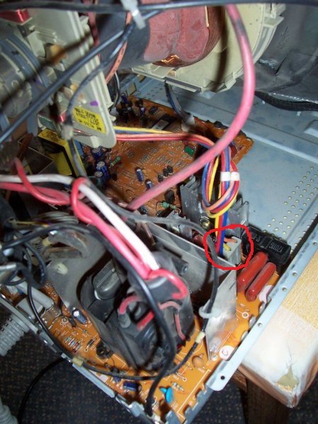 Tessék jelöltem a képen melyek azok. Azért vigyázz mert a képcső 15-20000 V-os feszről megy! Szóval óvatosan nyúlkálni ott na meg a kis panel a veszedelmes a végén ott meg több száz voltok futkosnak!