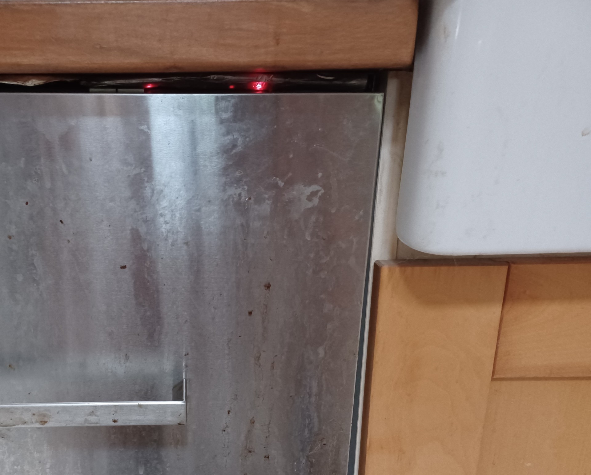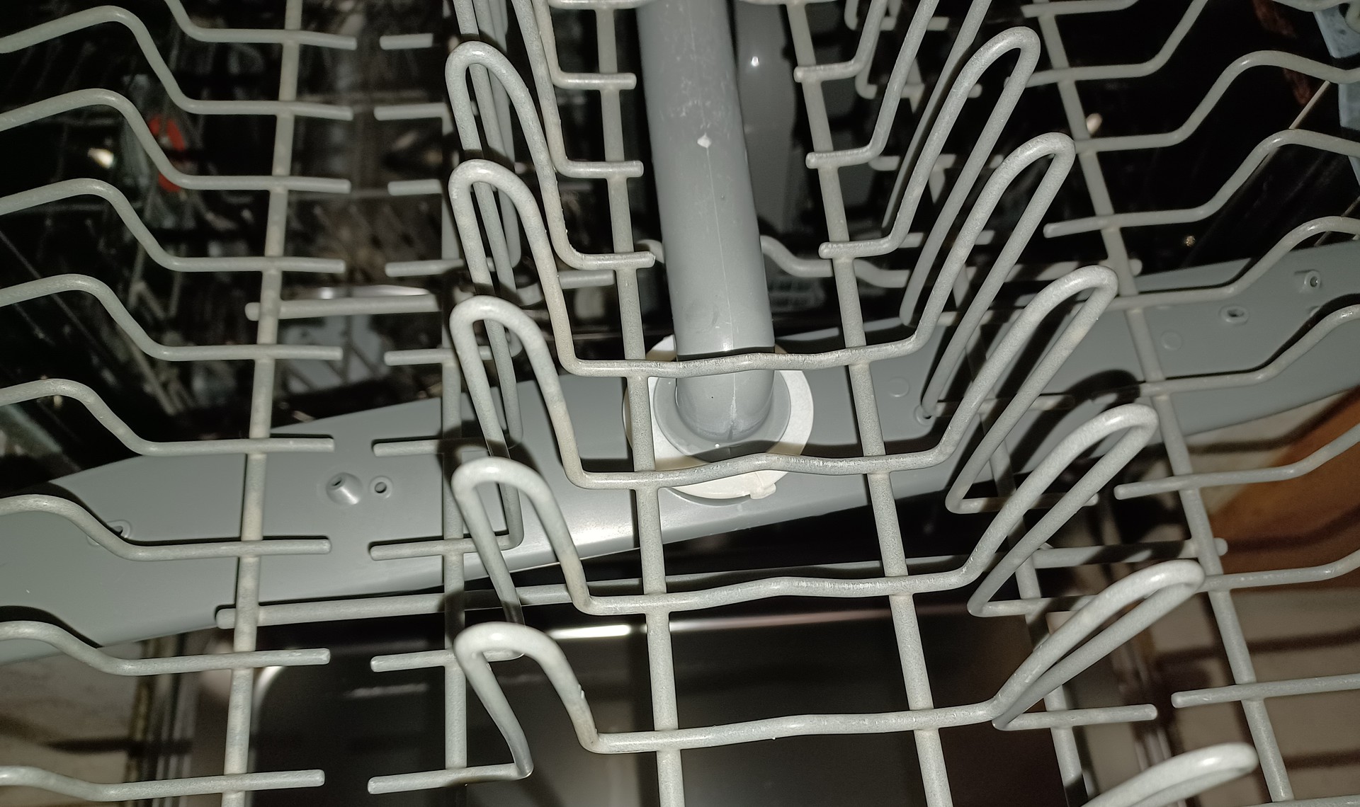 Az alsó tálca mosogatásánal az volt az probléma, hogy az evőeszköz tartó kosár kilyukadt, és volt pár evőeszköz, ami hajlamos volt alul kicsúszni, és így az alsó mosókar beleakadt, és nem tudott forogni.