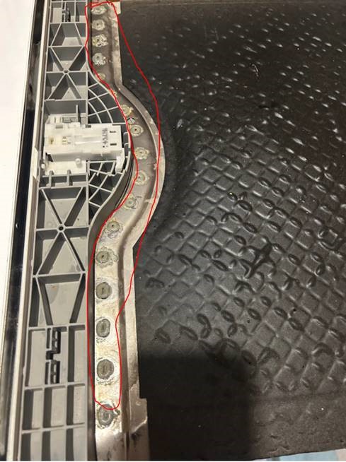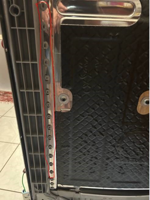 Bosch mosogatógép ereszti a vizet az oldalán. Először azt hittem, hogy az ajtó alsó tömítés. ki is cseréltem, mert összerakott állapotban az ajtó sarkainál jelentkezett a folyás. De csere után kipróbáltam még összerakás előtt is kiderült, hogy nem az ajtónál, hanem a pirossal bekarikázzott részen ömlik a víz. Nem találok ezen a részen semmi cserélhető tömítést.