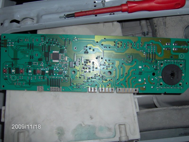 Egy 3x3mm 8lábu alkatrészt kicseréltem(ACS-102 triakk) és megjavult a gép kop kop kop.Tudniillik az egyik mszelep a vizfeltöltö a másik bemossa a mosóport.Ha egyszerre megy mindkettő,akkor bemossa az öblitőszert.Mivel a második nem működött a rossz triak miatt, nem érte el a vizszintet és a program leállt-"vízhiány" hibajelzéssel.Szerencsére programhibát eddig nem tapasztaltam.