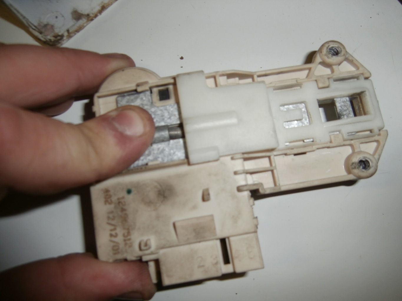 A képeken látható Zanussi(AEG/Electrolux)mosó-szárítógép ajtózárja hülyít.Indításnál 3x 4x kattan egyet és kiáll E40 es hibával(nem zár le az ajtó) Na de az ajtó be van csukva próbáltam több féle képpen is becsukni.Próbáltam egy csavarral átvágni úgy több esetben (de csak több próbálkozás után) is elindult.Arra rájöttem hogy annak a fekete pöcöknek kéne feljönni ami bent tartaná a reteszt és összenyomná az érintkezőt.Kikötném ha lehetne (de ha meg lehetne csinálni még jobb lenne) de szerintem ha direktre kötöm akkor meg a nyitásnál fog kiabálni hogy nem tudja kinyitni.Ésetleg tudtok valami ötletet adni hogy miért nem zár le ez a nyavajás zár?Előre is köszönöm!