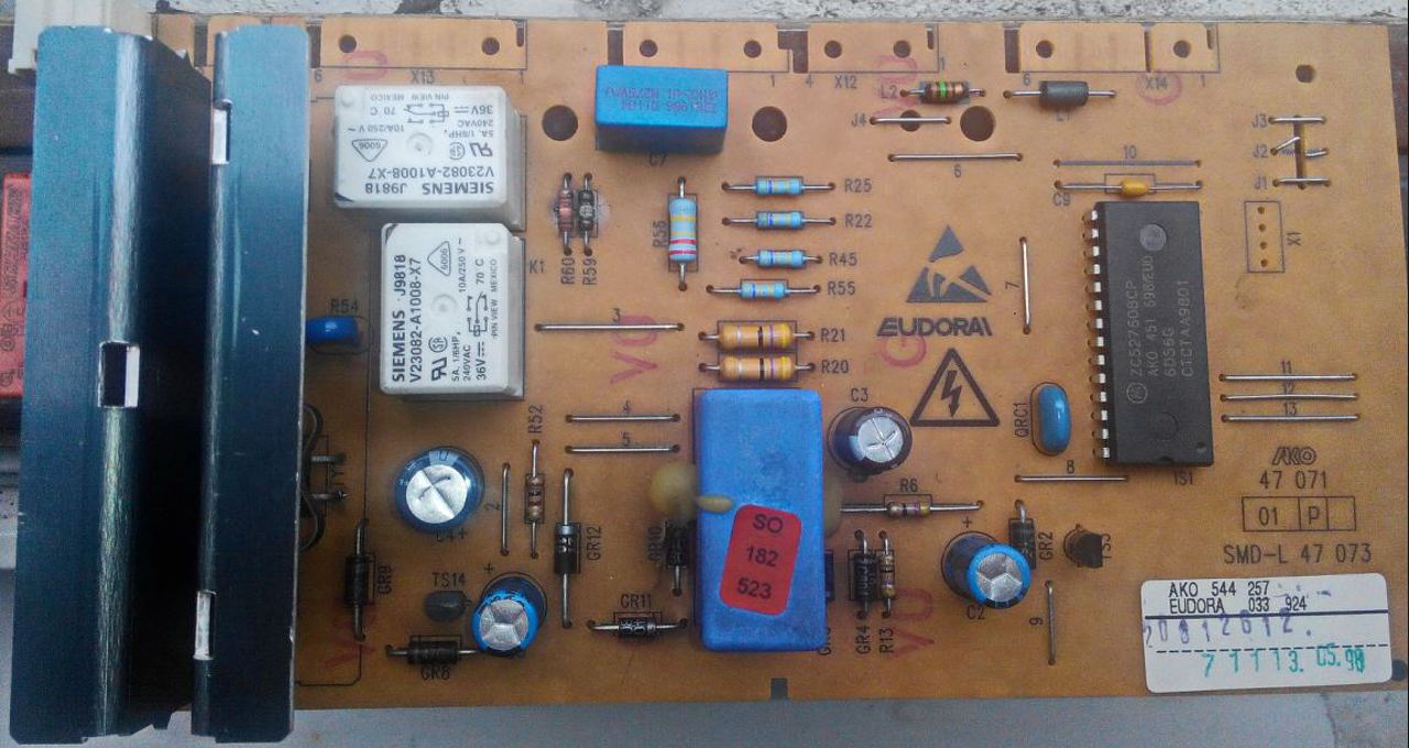 Eudora EuroNova 600 (EU 352/06) mosógép panel javításában kérnék segítséget. A gépet beázás miatt szétszedtem, és a panelon 2db égett alkatrészt találtam, amit nem tudok beazonosítani, mivel sajnos rajzot nem találtam róla sehol. Kérdezném a hozzáértő kollégákat, hogy esetleg tudják-e, a kérdéses ellenállások értékét? (R59-R60) Előre is köszönöm! Üdv :Zsolti