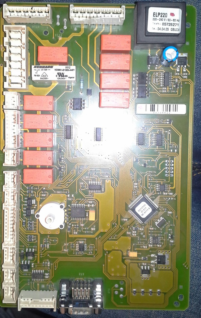 Na így mindjárt más!Fent van az a Panel ahova bemegy a 230 Na ott néz szét a táp körben,gondolom IC s tápja van már.Egyébként hallkan megjegyzem hogy a bekötését is nézd meg mert ez nem is háztartási hanem ipari gép és 2 fázisra is be lehet kötni!