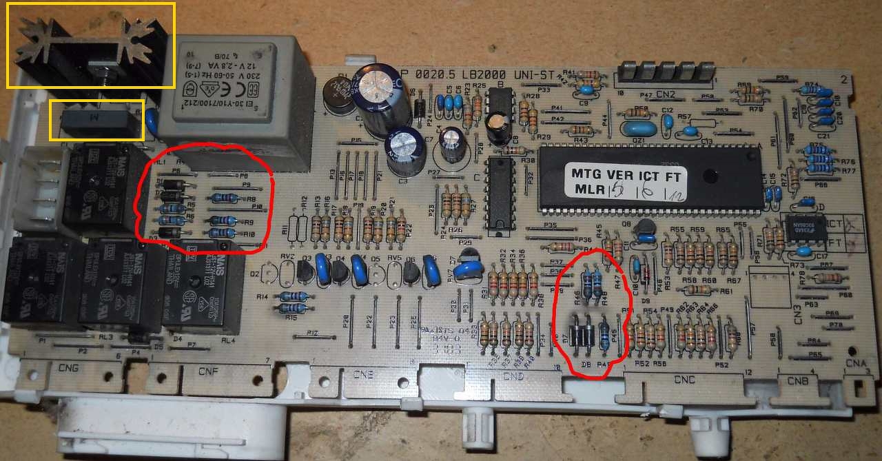 Esetleg ellenőrizd azokat az alkatrészeket amelyeket bekarikáztam. Jól gondolom, hogy a hűtőbordán egy triak van ?