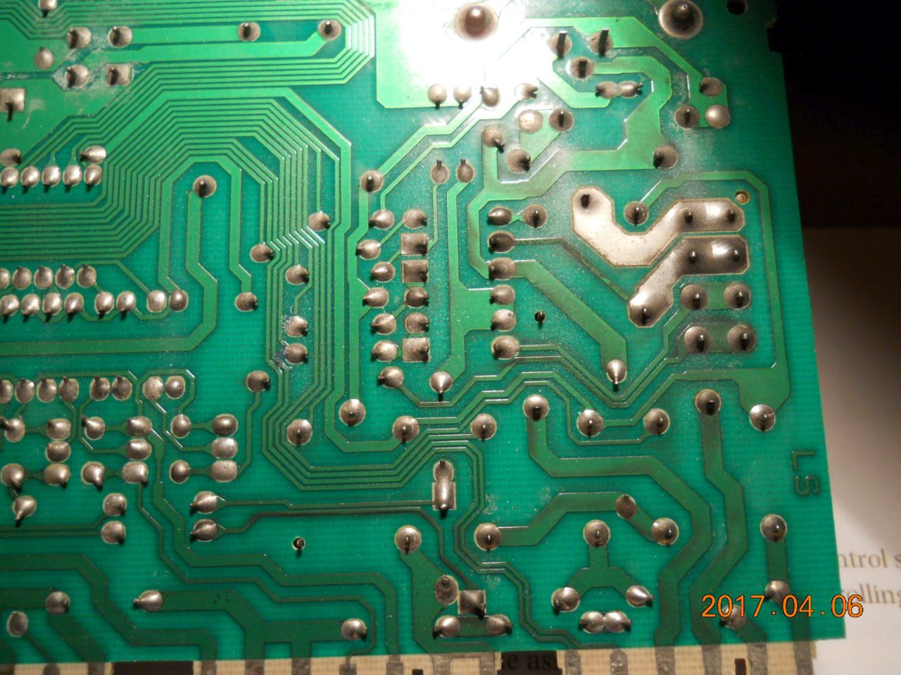 Készítettem egy képet a hibás panelról. Az egyik fekete folt mintha a CND csatihoz menne. Ami egy orosz rajz szerint a prg. kapcsoló motorja. Minden esetre megnézem mindkettőt. Egyébként az ajtó reteszelőt, hogy érdemes ellenőrízni?