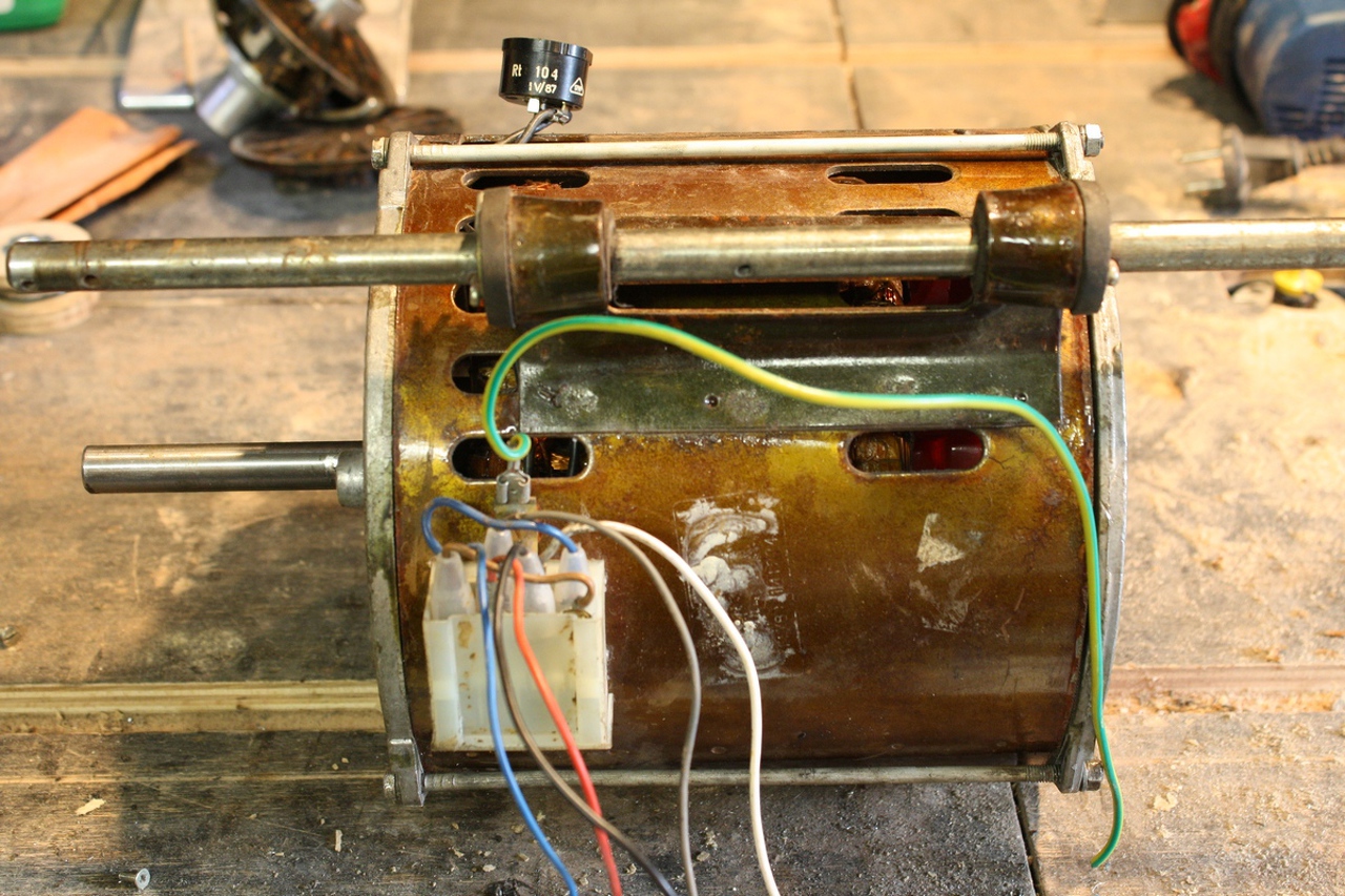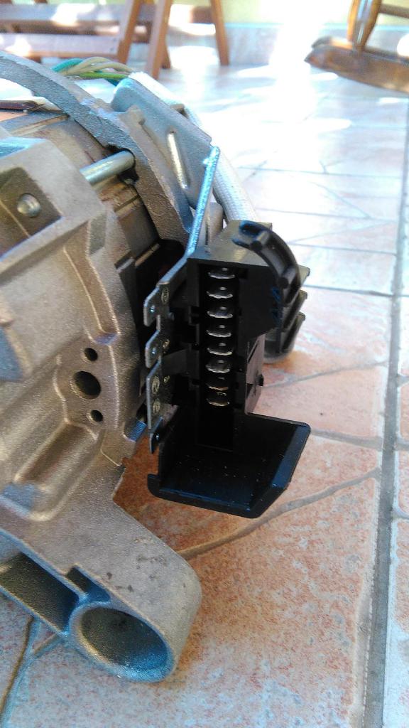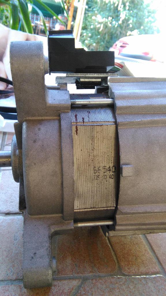 . A szénkeféi elég szépen elfogytak. Vettem bele újakat, de kipróbálni - hogyan? A motorra oldalt szerelt sorkapocsban 6 db. érintkezőtüske van - Jó, jó, abból kettő simán maga a tachométer vezetéke. Na de akkor is még marad ám 4 tüske. Hogyan lehetne mindezt rápróbálni 220 V-ra? És hogyan lehet azt is megoldani, hogy hol mosó-üzemben, hol centri-üzemben pörögjön? Gondolom, a mosőgép elektronikája benn a mosógépben ezt simán elintézte, de most az asztalomon van a motor, a vezérlés meg sehol. Egy orosz nyelvű youtube oldalon bemutatták, hogyan kell a 4 szál huzalból 2 szálat összekötni, a fennmaradó másik kettő peidig a 220, ám akkor az csak a forgás, de nem a mosó és a centris. A motorra rá van külön ráírva, hogy a mosóban 4A-t és 40 W-ot eszik, centriben meg 3A-t és 300 W-ot. Érdekes ...