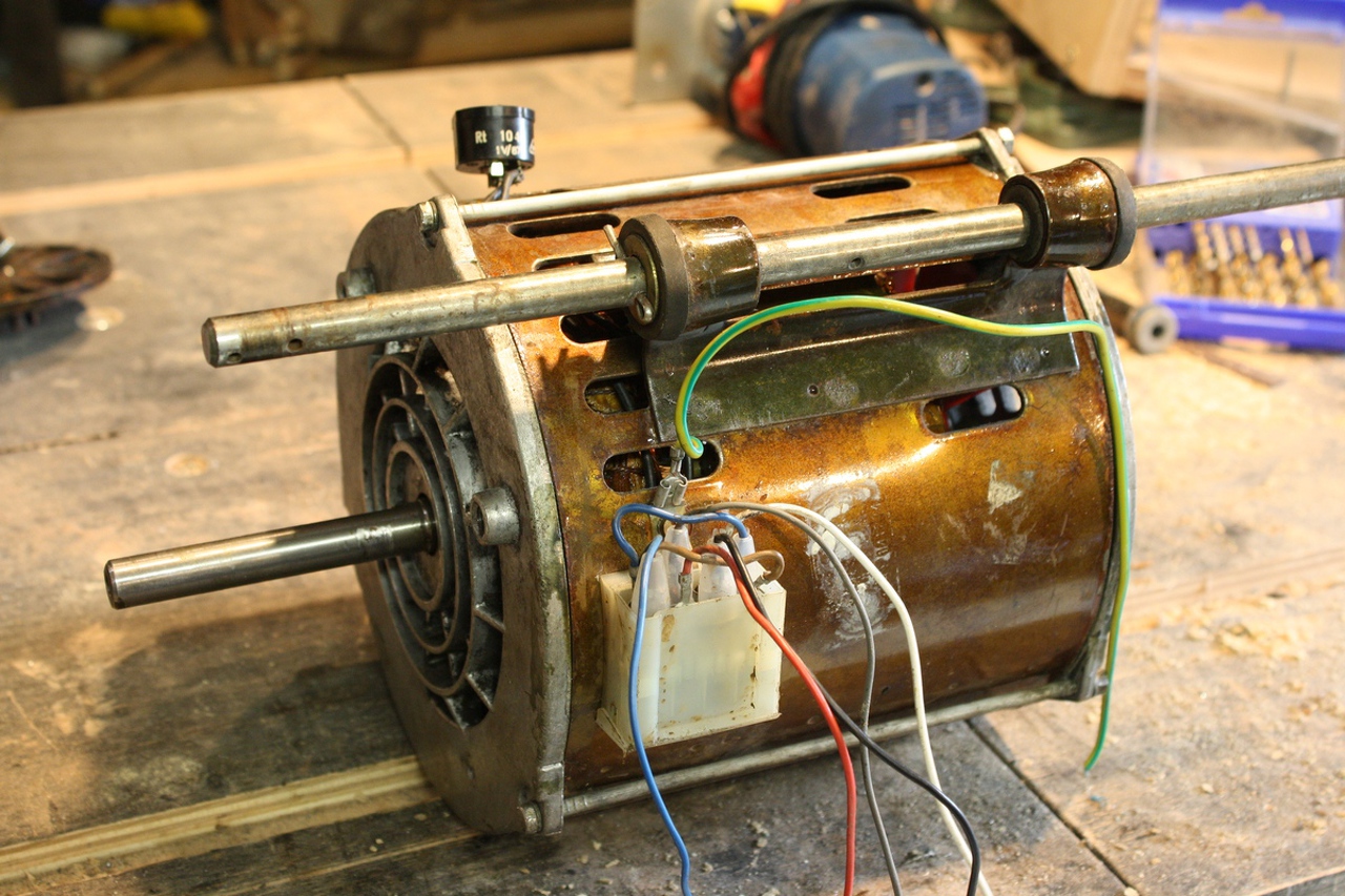 Az állórészt kösd sorba a forgórésszel és egy porszívóból kitermelt fordulatszám szabályozóval tudod a fordulatot változtatni. A nélkül csak pillanatokra szabad kipróbálni, mert különben szét foroghat.