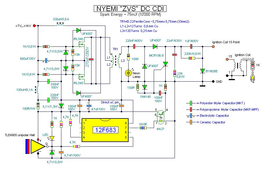 Elkészültem "ZVS" DC CDI gyújtássommal. Ez az előgyújtás vezérlős Hall-os. De megépítettem impulzus tekercsesre is (előgyúszi vezérlés nélkül). Tökéletesen dolgozik akár 20 ezres fordulaton is. Véleményetek?