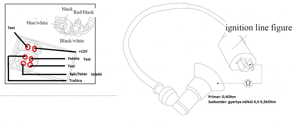 Sajnos a mérésekhez csak egy DÜWI multiméter állt rendelkezésemre, így nem tudom mennyire pontosak az adatok. Gerjesztőtekercs feszültsége önindítózás közben terheletlenül: 59-60 V. Áramkörrel terhelve (gyújtás rákötve): 49-50 V. A kondenzátoron 290-300 V. váltófeszt mértem. A gyertyahézag 0,5 mm. A 0,4-hez képest nem látok változást, de 0,6-nál már mintha ki-ki maradna az egyik oldalon a szikra (persze lehet, hogy nem jól láttam). Alapjában véve picinek látom a szikrákat, de a motor még nincs indítható állapotban, ezért csak szabadon teszteltem a gyertyákat. Hengerben, nyomás alatt még nem, de gondolom ott nehezednek a feltételek. Kiváncsian várom a lehetőségeimet! Üdvözlettel: Péter