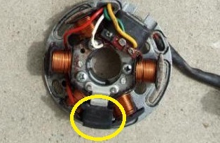 Sziasztok! Malaguti F10-es gyújtás (Ducati) alaplapját baleset érte. Egy hosszabb csavar szétcseszte a mellékelt képen sárgával bekeretezett alkatrészt. Kérdés: mi ez? Lehet-e cserélni? Érdemes-e?