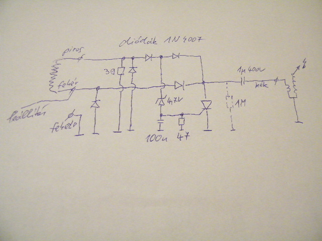 A gyújtókondi töltőfeszültsége tág határok közt változhat. A kérdéses 1µF kapacitás üzem közben 280-350V feszültséget ad a tirisztoron keresztül a gyújtótrafóra. "Eszesebb" gyújtásnál természetesen a negatív periódus is ki van használva, 100-330µF kapacitást töltenek fel ~12V környékére, a túlfeszültséget tirisztorral korlátozzák.