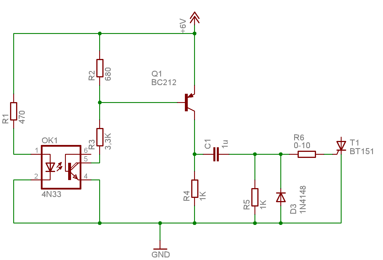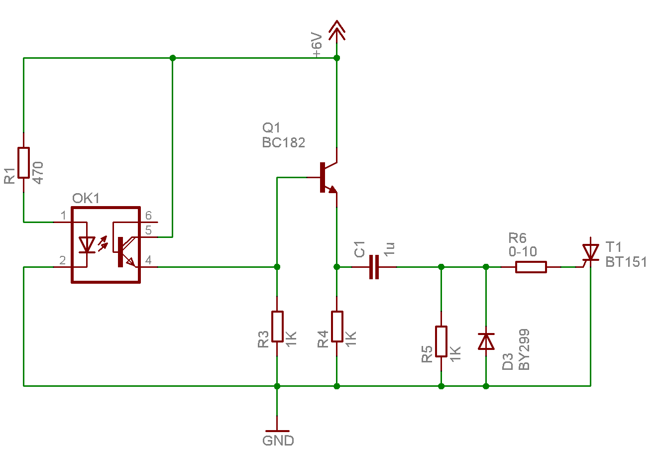 Bocsi,de nem kellenek a diódák,mert nem fog tudni lezárni a bc,és minden zajt összeszed ha az opto zárt. A bázisellenállást kösd az opto kollektorára és ennyi.