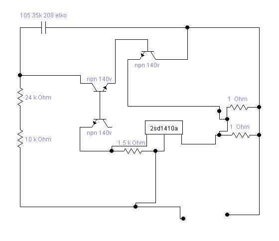 Működik. Csak én mindig fanyalgok,ha eredetileg kapcsolóüzemre tervezett áramkörbe emitterellenállást látok. Nade mára lassan kiszállok,nemsokára mennem kell dolgozni.