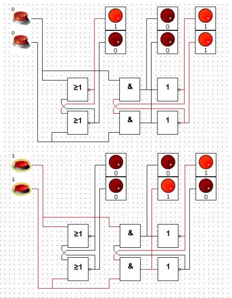 Szimulálná valaki a két keresztbe kötött XOR kapukat? Nekem most nincs szimulátor a gépen, de gyanús, hogy 10b bemeneti kombinációnál oszcillál.