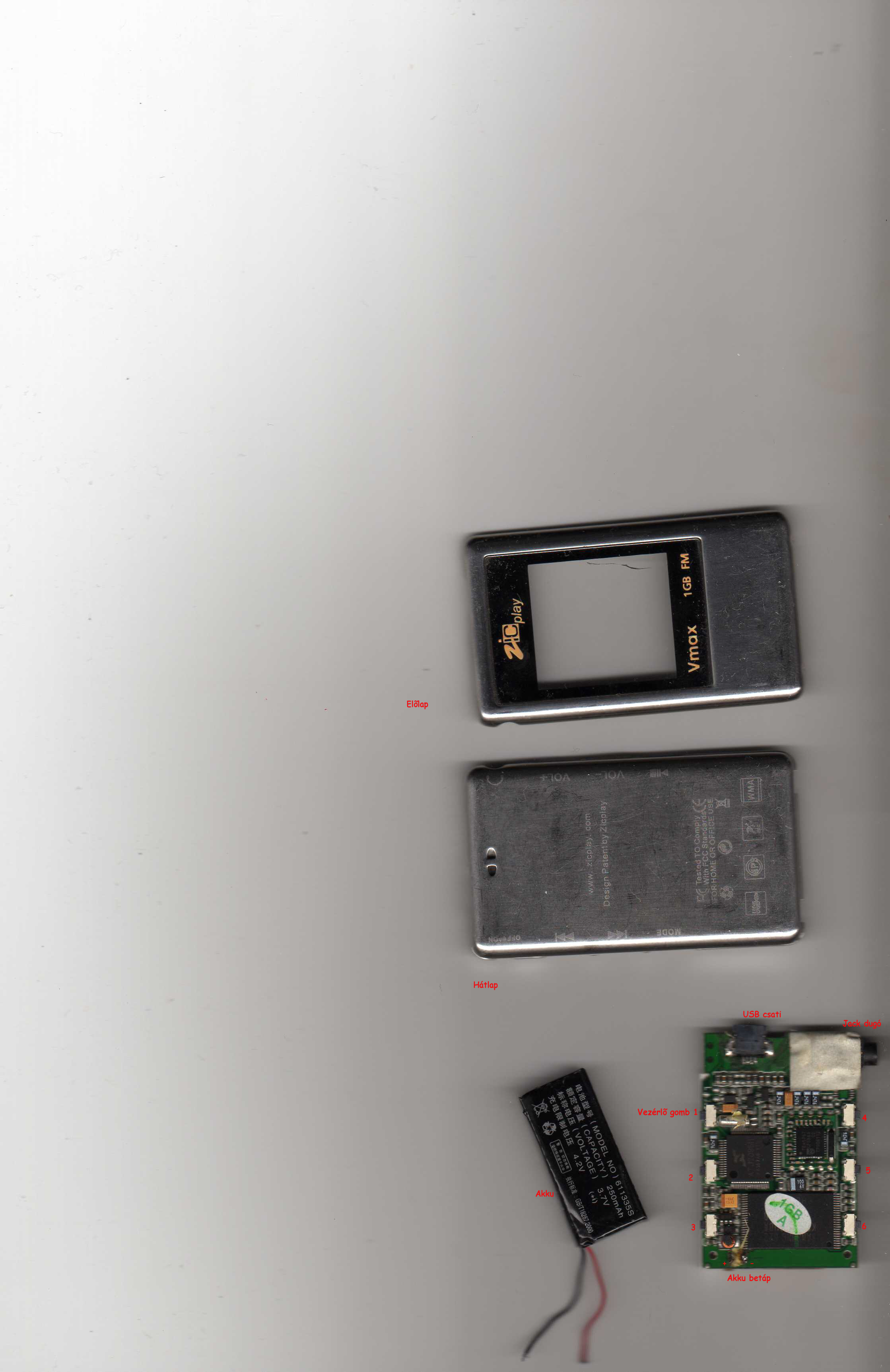 Ennyire nem vagyok bénus,csupán annyira,hogy nem tudom megtalálni smd cuccokban a hibát! Normál alkatrészeknél könyebb lenne! Nem vagyok műszerész(villanyszerelőnek tanulok) Tudom,hogy nem szabad forditott tápot adni SENKIT NE TÉVESSZEN MEG,az aksit én forasztottam le,és helyesen is forasztottam vissza(elötte megnéztem a polaritásokat) Az akku feszültségét megnéztem,és nem merül,miközben bekapcsolt állapotban van,sőt nincs is lemerülve #148743 1.Az aksi nem veszit feszültségéből,és a 3.xx volt megvan 2.Nem látható rajta sérülés,de megnézem pontosabban 3.A lejátszót MÉG nem találtam meg a neten,a hátlapon található zicplay.com webcimmel sem mentem sokra 4.bekapcsoló gombbal indult,még amikor müködött ![]() 5.USB-re csatlakoztatva töltödik az aksi 6.A nyákon található USB két szélső lába megkapja a feszültséget bekapcsolt állapotban(rajtalévő aksival )7.hmm... ide asszem nem kell semmit se irnom Miklosch:EGYENLŐRE,nem tudom beazonosítani a lejátszót,és ez a féle variáció sem érhető el 2 szkennelt kép csatolva(jobb mint a mobilos) Tomi
