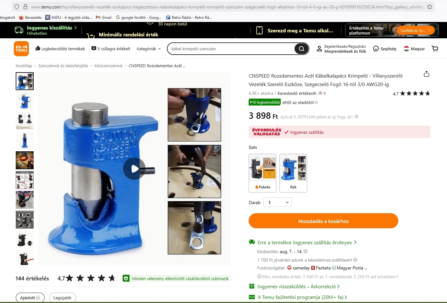 Amatőr kérdés következik: Új testkábelt szeretnék gyártani a frissen vásárolt motoromba és ehhez 16mm2-es sodrott kábelre kéne rákrimpelnem a képen látható sarukat. A meglévő szerszámaim ehhez nem jók, viszont a különböző online szerszámboltokban nézelődve nem igazán tudok eligazodni, hogy melyik fogó lenne jó erre. Mondjuk ez jó nekem?