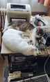 A fehér kicsi korában felmászott rá. Készítettem róla képet, de az "okos" telefonom kitörölte, mert szerinte nem sikerült jól.