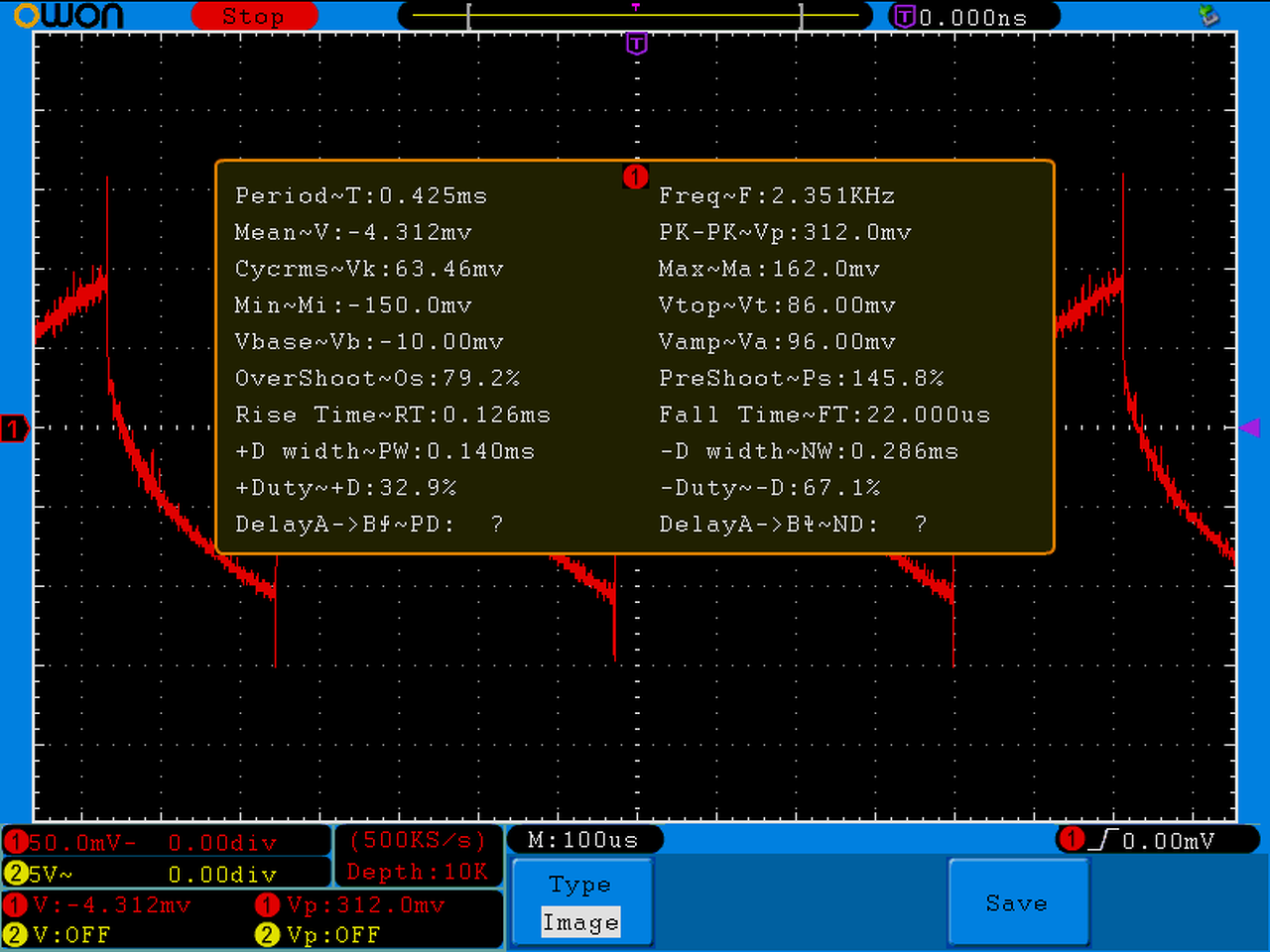 Ami a szkopot illeti az ugy néz ki, hogy komplett FFT analizist csinál, innen a sok érték. Méri az átlagot, a ciklikus szintet (a vizszintes idö intervallumában), méri a jel váltoáramu tartalmát ( zajt, brummot stb.) min-max értéket ( peak to peak), stb. Szoval a szkopon kapsz egy komplett analizist akár igy ilyen primitiv mérésre is. Vannak esetek ahol ez fontos, pl. erösitök tápja, de többnyire inkább zavaró.