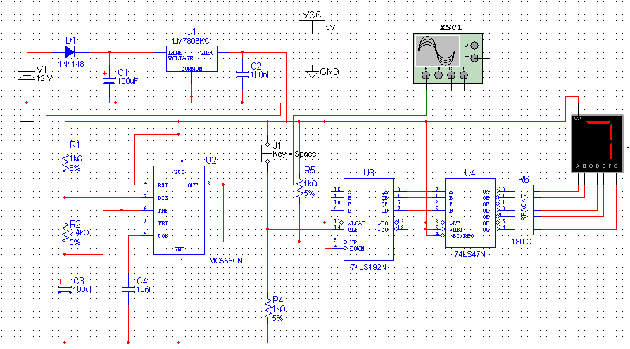 Még csak két hete foglalkozok a multisim9-essel. Szeretnék egy számlálót készíteni 74Ls192, 74Ls47 segítségével, ami egy 7szegmenses kijelzőt hajtana meg. Az órajeklet egy 555-össel állítom elő. A neten sok ilyen kapcsolást találtam, de amikor összeállítottam a kijelző nem működik. Az 555-ös 3. lábán még megvan a jel. És ami furcsa, hogy az IC Vcc, GND lábát nem jelöli. Valaki tudna mutatni egy olyan kapcsolást amiben működik a 7szegmenses kijelző. Segítségeteket előre is köszönöm.