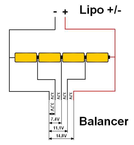 Jó. Akkor elmagyarázom. A balanszer csatlakozó minden egyes cellára csatlakozik, ezeken nem folyik áram. A balanszer csatin pontosan a cellák feszültségét mérheted! A mellékletben láthatod, hogy a terhelő áram a felső két vezetéken folyik, de én feszültséget az alsón mérek. Nem kell négy vezetékes mérés, mert a lipo akksik fel vannak készítve a cellánkénti feszültség mérésre alapból. Egyedül annyit kell tennem, hogy áthelyezem a feszültségeket a uC GND-jéhez képest, így kizárva a negatív kábelen eső feszültséget.