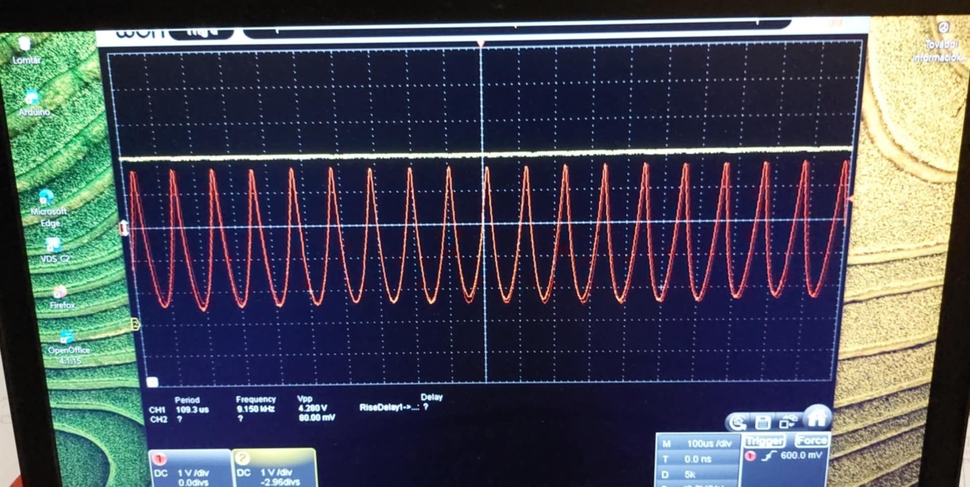 Egyetlen szépséghiba ez az oszcilloszkók kép: a piros görbe a led feszültség.... ez gerjedés, vagy ez a kapcsolás csak így tud működni?