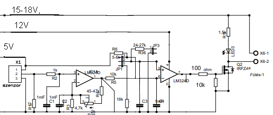 Egyforma hőfokszabályzó és mindkettőnél több éves használat után egyik napról a másikra nem "kapcsol"10 millivolt változásra csak 100-250 millivolt változásra folyamatosan csökken a kimenő feszültség és nem stabil a hőfok. A szenzort is cseréltem és LM 324-est is ,az első erősítő jól működik de a második amelyik a kapcsolást végezné bizonytalan. Mi lehet a hiba? Köszönöm.