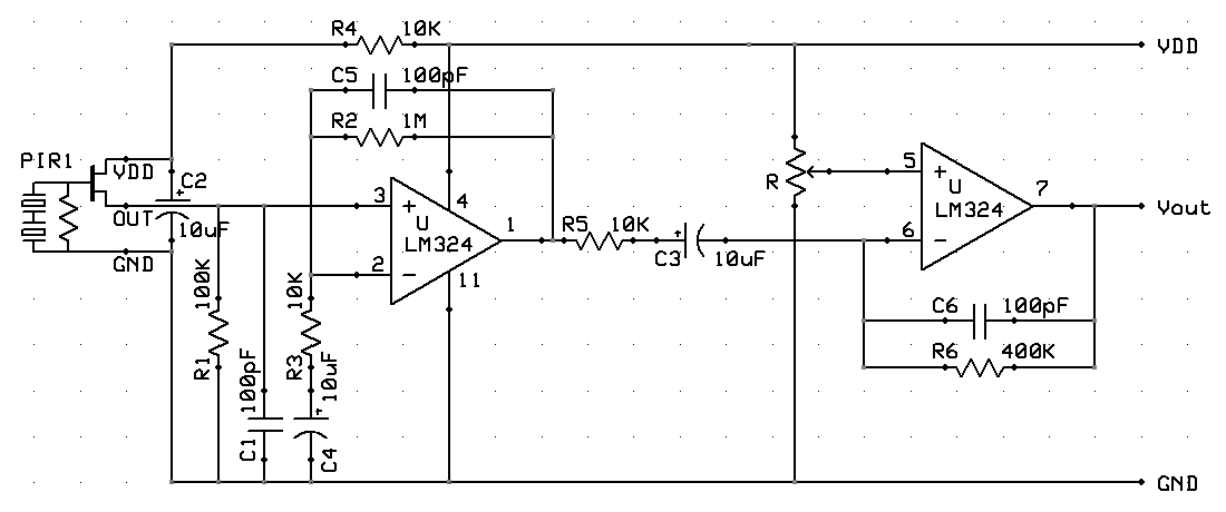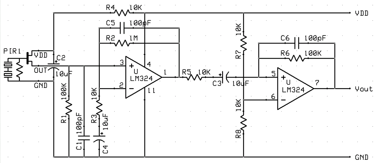 A fresnel amit használok pont egy ilyenről származik, alá pedig valami KDS9 feliratú érzékelőt raktam ami volt itthon egy mozgásérzékelős lámpából - utóbbiról nem találtam semmi anyagot, de mivel minden más amiről van teljesen egyforma karakterisztikájú, ezért gondoltam ez se lehet olyan messze... Lencsét és érzékelőt kapok olcsón kínából, itthon veszek műverősítőt + pár alkatrész, nyák, és nagyobb mennyiségben ott tartok vele mint a kínai modullal - csak reményeim szerint ez megbízhatóbb lesz... egyszer ![]() Régebben már csináltam hasonlót: egy MCP6002 és egy PIC volt a kapcsolásban, ráadásul 2V-os környezet volt, szóval eléggé ki volt hegyezve de működött mint a svájci óra. Viszont a kapcsrajzát sehol nem találom, ezért kezdtem ismét vakon tapogatózni...
