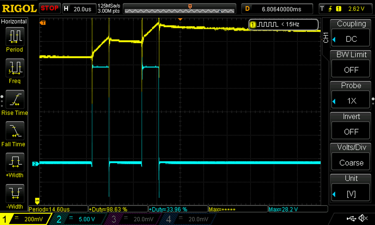 A 2-es csatorna (5V/div) a söntellenállásé? Akkor 20V esik 0.5mR-en? 40000 Amper? Paks?Ugye nem a szkópbemeneten keresztül kötötted össze a két különálló földet? Lehet hogy én nem figyeltem eddig, de miért integrál a kimenet, mikor a kapcsolásod egy egyszerű analóg különbség-erősítő áramkör? Az a 10nF nem hiszem hogy ilyen energiákat tárol. A hozzászólás módosítva: Nov 3, 2016