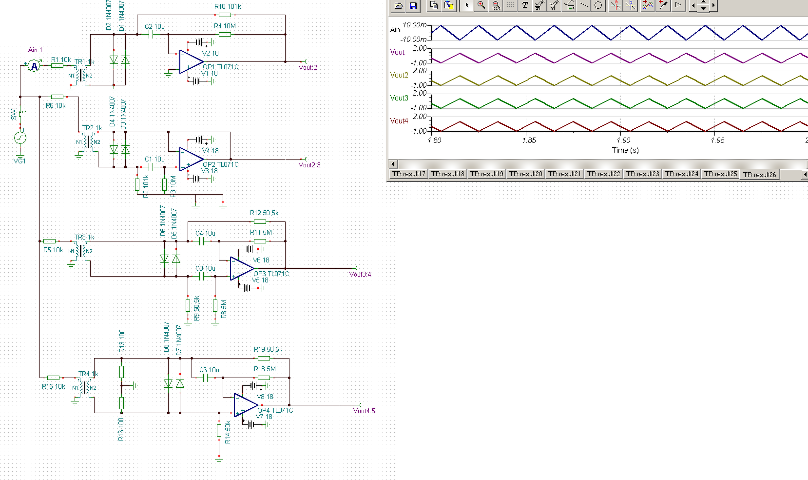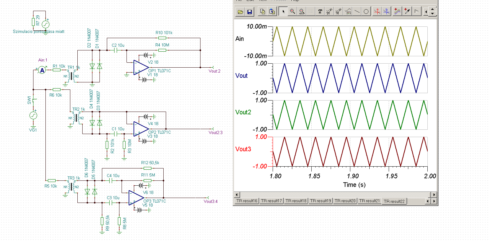 Az a kapcsolás amit a hivatkozott hozzászólásba beraktam, az két kapcsolás, az egyik csak egy kicsit más a másik meg nagyon más, de a kettő viselkedése nagyon hasonló - konkrétan ezt a kettőt, illetve ezeknek a tulajdonságait akartam összevetni egymással. Majd egy későbbi hozzászólásban 4 verzió lett ebből a kettőből. Egyelőre nincs eldöntve, hogy melyik a jobb vagy rosszabb, de ha van építő jellegű észrevételed/kritikád akkor jöhet!