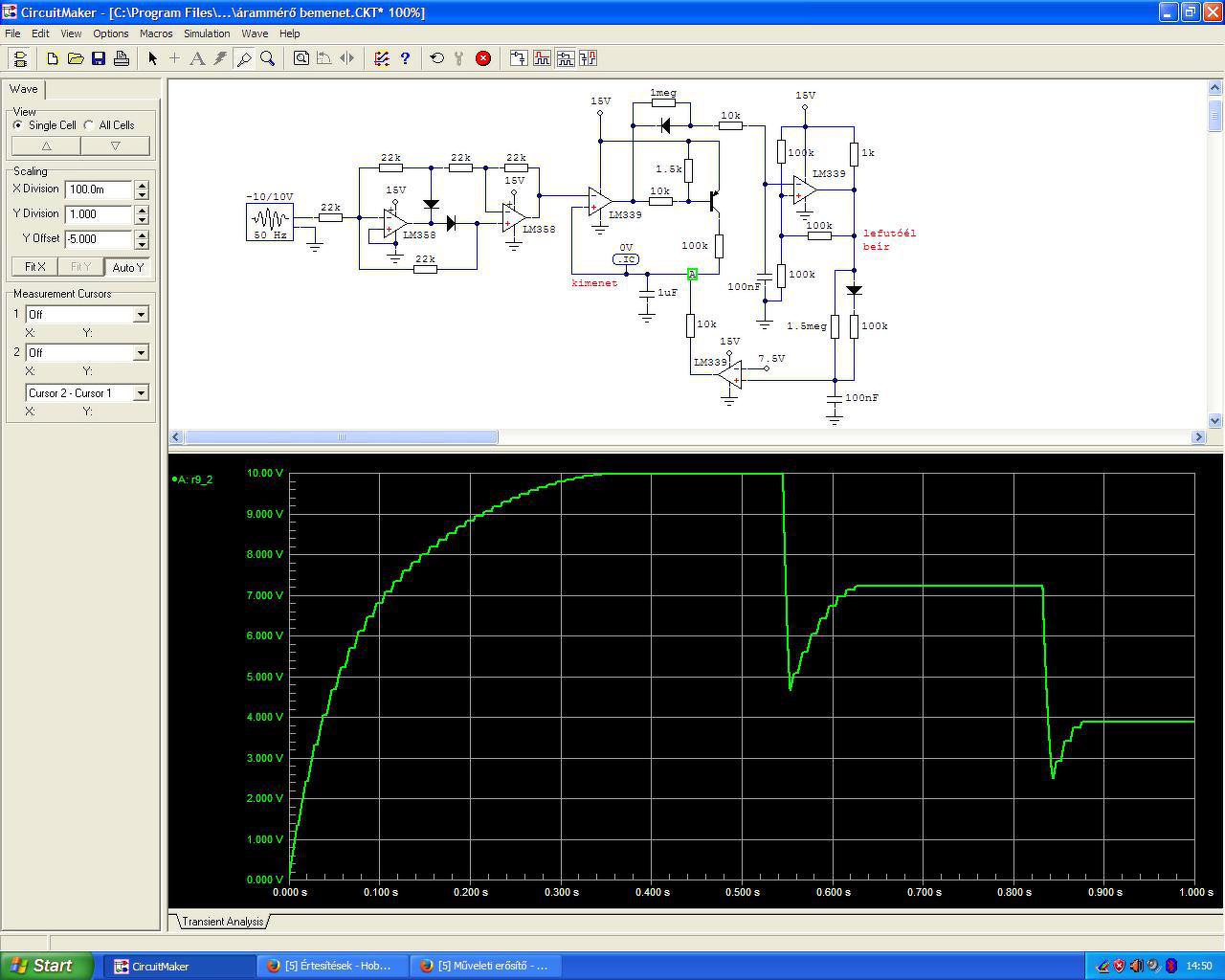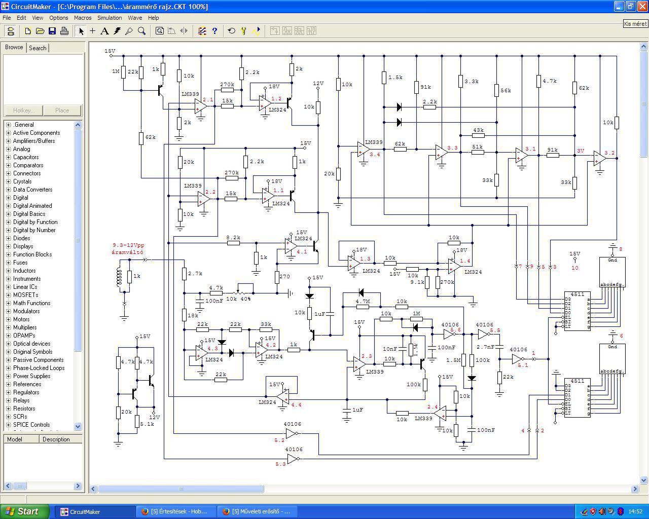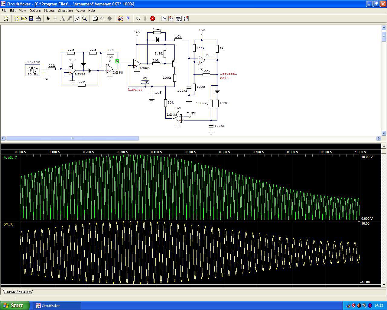A bemeneti fokozat nálam kétutas egyenirányítóval kezdődött, ezzel a jelalakkal a továbbikban már bármit lehet kezdeni tetszés szerint. Nálam csúcsérték mérőre volt szükség, ami addig mérte az áramot amíg az emelkedett és csak azután jelezte ki. Állandó áramterhelésnél másodpercenként hármat mért.