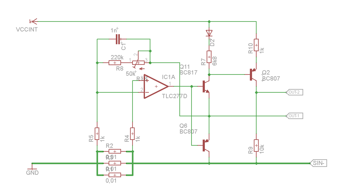 Vagy használjatok CFA (current feedback) topológiájú opampot. Sok ezer V/us jelemelkedési sebességel készülnek és ott nem gond az alacsony generátor impedancia. Pont olyan bemeneti fokozatuk van, mint nálam a diszkrét...csak az integrált. Még egy percíziós OPA kell, ami garantálja az 1uV offset hibát, és akkor van egy high tech megoldás erre az áramváltó dologra...