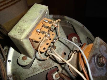 A lengötekercs litze kivezetése pedig közvetlenűl a kitrafóra van kötve., nincs a szokásos lengő kivezetés csatlakozó bakelit lemeze, forrfüle. Csináltam közelről képet, igy jobban érthető.