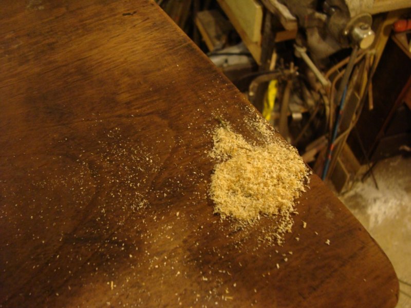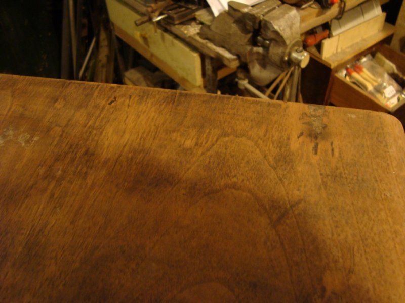 Volt viszont a tetején, a végcső felett (ott melegszik) egy kis furnér hiba, hiány, mely kicsi volt ahhoz, hogy a tetején egy csíkot kivágjak, és újra lamináljam, viszont elég nagy ahhoz, hogy ne lehessen úgy hagyni. Azt találtam ki, hogy, a hibás részt bekentem vastagon faragasztóval, majd fürészport szórtam rá, és leszorítottam egy falappal, pillanatszorítóval. Száradás után sikba csiszoltam, hát nem lett szép. Olyan volt, mintha a szépen erezett fa, pozdorjaként folytatódna. Újabb csiszolás, majd csináltam egész liszt finomságú faport, keményfa köszörüléssel, és ezt szórtam a ragasztóra. Sokkal szebb lett, semleges fa felületet kaptam. Szerencsére ezt a részt elég sötétre kell majd pácolni, igy talán nem tünik fel a javítás. Ki kellene próbállni világos felületen is, talán ott is beválik, de nekem most nincs ilyen fejújitandó kávám. Üdv. |