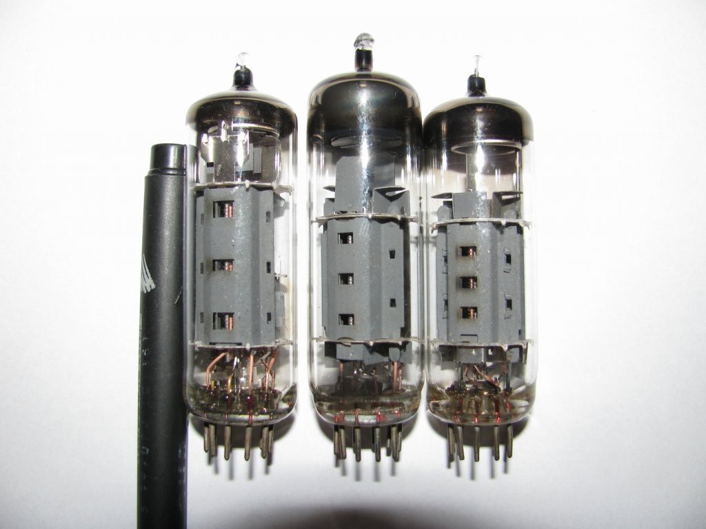 Egy kis fejtörő a szakavatottaknak. A mellékelt képeken egyforma sorrendben két oldalról is lefényképeztem 3db elektroncsövemet, amiket sajnos én nem tudok beazonosítani. Ha valakinek első ránézésre beugrana az jó lenne.