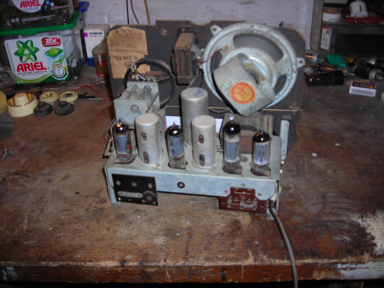 Barátom hozott egy Tesla táskarádiót, megörültem a meglepetésnek ,de a meglepetés még nagyobb volt , mikor közölte , hogy tegyem rendbe és jó lesz a konyha kredencre. Így nézett ki és ennyit tudtam kihozni belőle. Szól szépen, minden eredeti benne. Öreg Tom