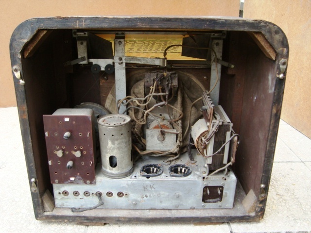 Üdv mindenkinek. Ismét egy felújítandó készülékről írnék, ma került a kezembe. Ez egy Orion 933-as 1939-es gyártás. Viszonylag ép állapotban van, bár két cső hiányzik. Nekem ez a típus kedvencem a 2+1-esek között, párral már volt dolgom, de ezidáig ez a típus tudta, érzékenységben, hangminőségben a legtöbbet. Nincs is összefusizva. A dobozán sajnos látszik az elmúlt 74 év tán még a háború is. Azt lesz a legnehezebb felújítani, majd külön írok róla. Most azon gondolkodom, hogy lepusztítsam, és lefújjam a panelt, vagy csak javítsam ki valami ezüsttel.