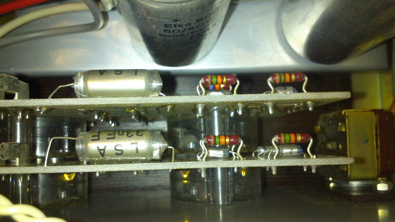 Janó bácsi! Ma, vasárnap egész délelőtt a készülék fölött ültem, egyeztettem a rajzzal, mértem, kiforrasztottam, azt is mértem, és megszívatott! Ha önmagában nézem végig a sávokat, mind hangolható. RH-n a sávnyujtó is működik.A hangerőt nem lehet nullára levenni, de megitélésem szerint ami marad még elfogadható. Maximumra nem is tudtam kipróbálni, mert azt nem lehetne elviselni. A feszültségek alatta vannak a rajz szerintinek, már a diódáról is csak 220körül jön le, és így értelem szerűen a 170 helyett 140, 120 helyett 90-100 van. Az AZ 1-es az ami benne volt. Viszont a lemezjátszó kimenetét PU állásba kapcsolva továbbra is ugyanúgy hangolható a készülék. Az átkapcsoló nem hibás. Ha az átkapcsoló potméterek felé menő érintkezőjét felszabadítom, tehát semmilyen kapcsolatban nincs a 47k -val, akkor is szólt tovább alap hangerőn, csak hangerőt nem lehetett szabályozni, de a forgó kondival el tudtam hangolni. Hát most itt tatok! Ha jobb nem is lesz, már így is meg lesz mentve, mert szép a kávája, csak újra kell lakkozni!